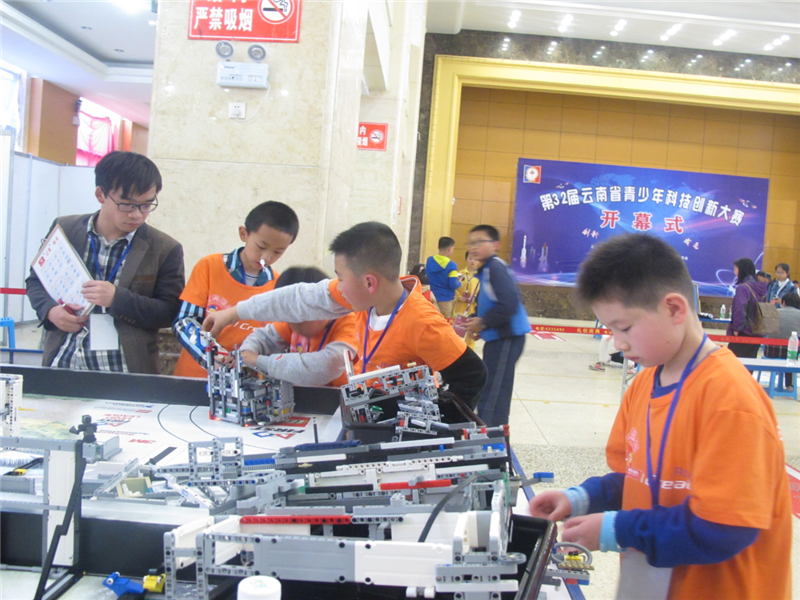 2017年第三十二届云南省青少年科技创新大赛机器人竞赛于4月9日圆满落幕。我校带领18个参赛队,共计64名选手参加比赛,经过激烈的角逐,获得一等奖9个队,二等奖5个队,三等奖4个队。其中,FLL工程挑战赛包揽初中组全省第一、二名,包揽小学组全省第一、二、三、四名,获得代表云南省参加7月份在中山大学举行的全国机器人竞赛资格。