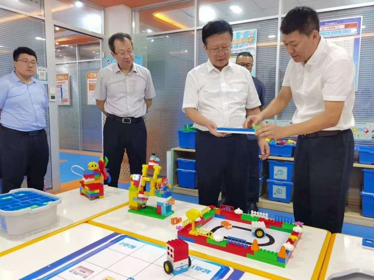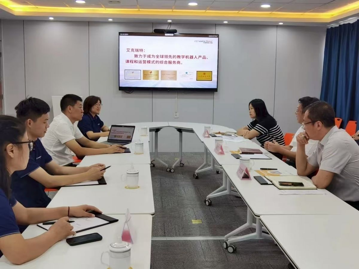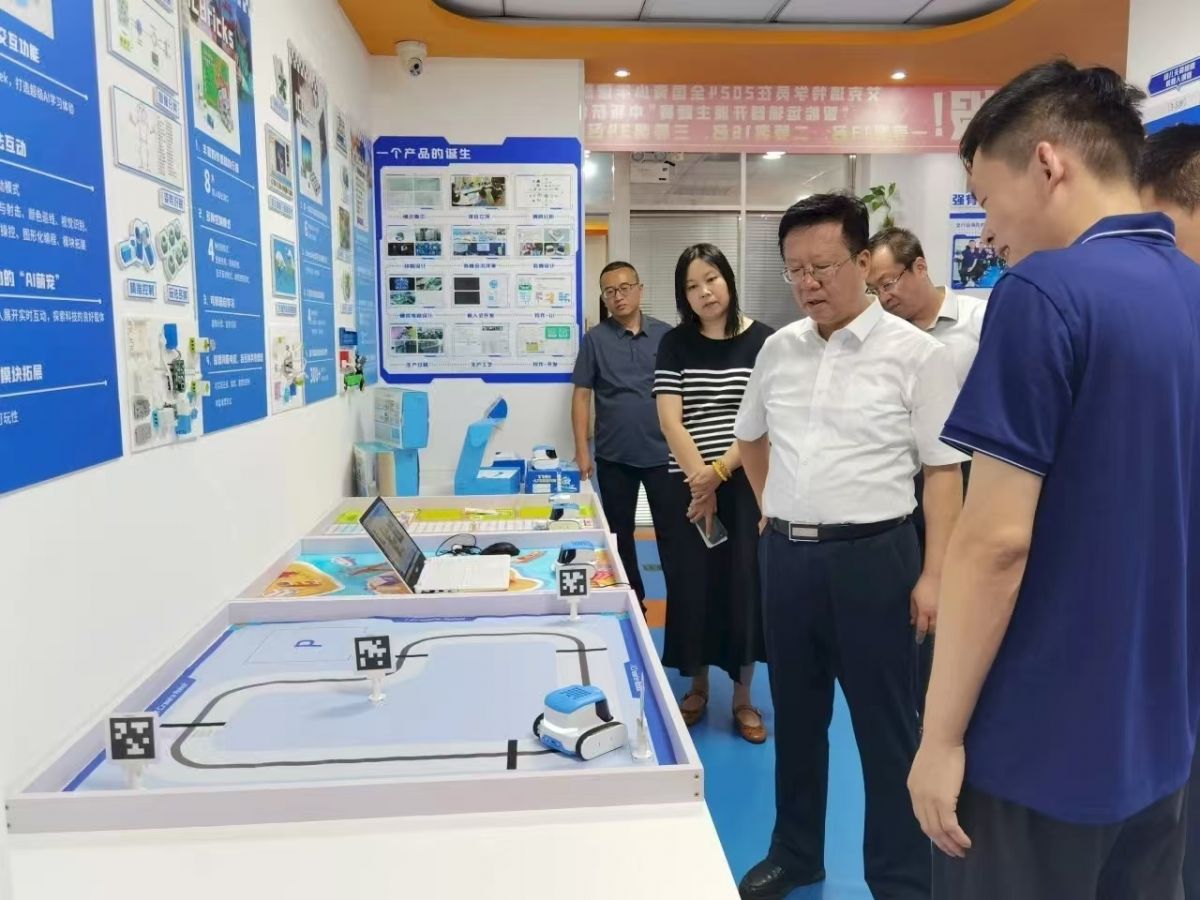 期间,一行人深入艾克瑞特的教学体验区、研发中心、产品测试区等场所,实地察看了解企业培训课程体系、编程模型以及教育科技产品的研发流程,观看了海外合作伙伴ICBlocks使用培训、产品标准化生产流程展示视频。