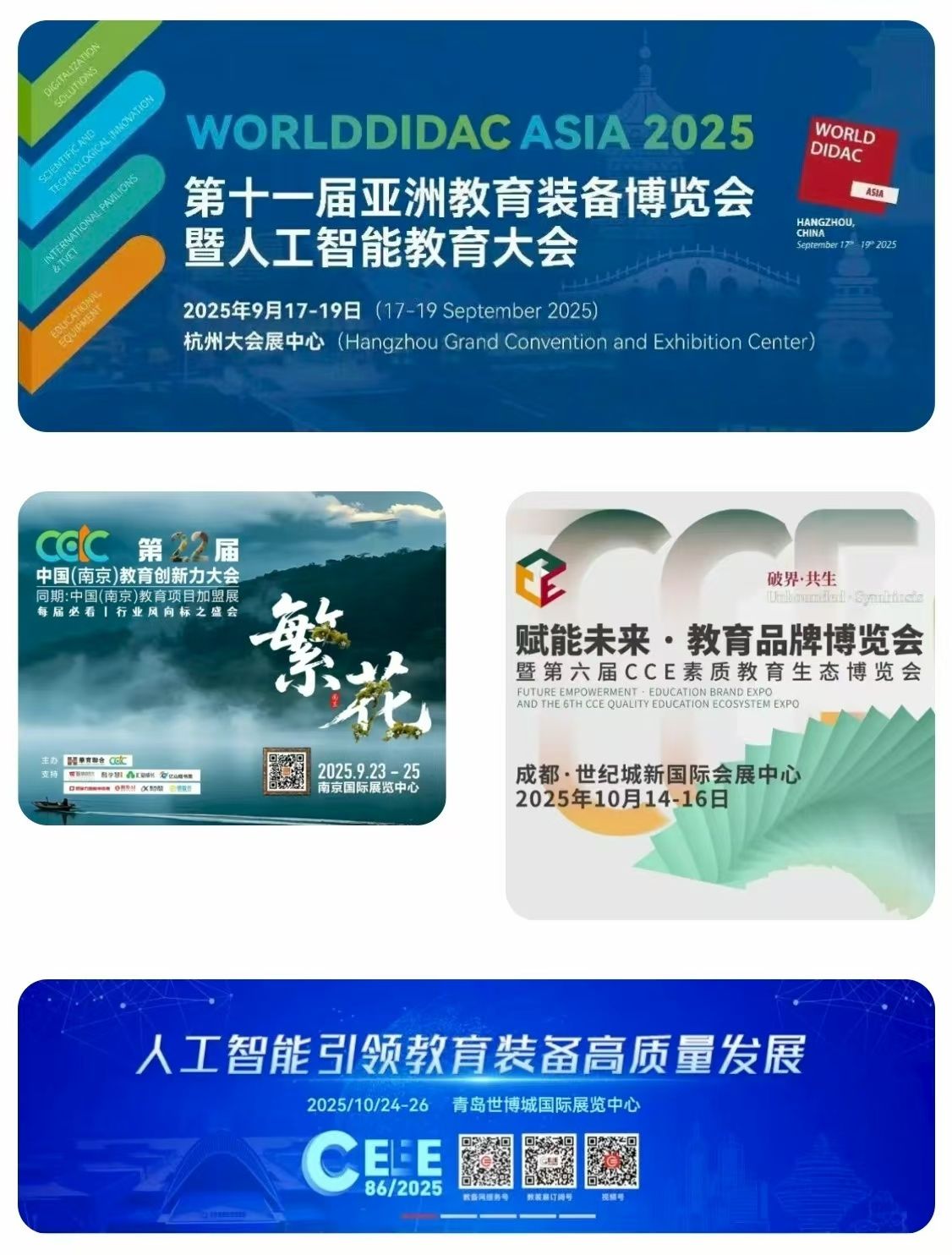 为促进行业交流与发展,山东艾克瑞特教育科技有限公司紧跟政策步伐,诚挚邀请您参加我们即将亮相杭州、南京、成都、青岛的四场教育展会。届时,我们精心打造的中小学AI通识教育解决方案将重磅登场,诚邀您一同探索其魅力与价值,携手共创科创教育的美好未来。