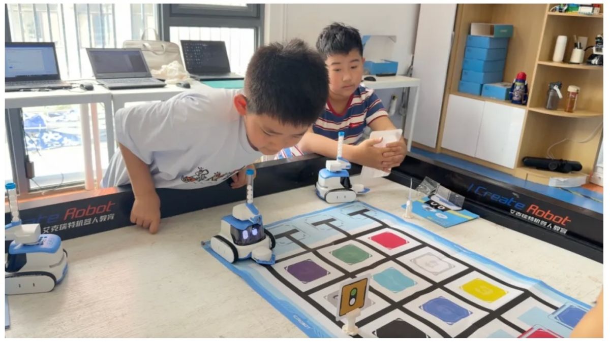 孩子用语音控制机器人执行任务,初步理解AI语音识别、逻辑判断与人机协作。
