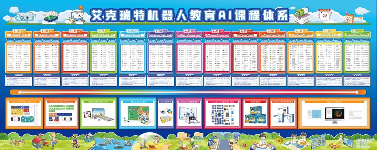 课程全面融合艾克瑞特自主研发硬件——ICBlocks、ICQbot、ICRobot、ICBricks,实现“课程 × 产品 × 教育理念”三位一体,让AI学习变得更生动、更系统、更有想象力。