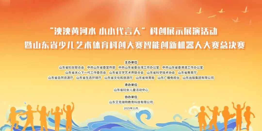 11月25日,由省妇联、省委宣传部、省委台办、省委港澳办、省关工委、省文联、省科协、省教育厅、省自然资源厅、省生态环境厅、省文化和旅游厅、省体育局、山东广播电视台、山东出版集团有限公司联合主办,省妇女儿童活动中心承办,山东艾克瑞特教育科技有限公司协办的“泱泱黄河水 小小代言人”科创展示展演活动暨山东省少儿艺术体育科创大赛智能创新机器人决赛在济南举行。省教育厅体卫艺处副处长、三级调研员林乙楠出席活动并致辞,省妇女儿童活动中心主任杲磊出席。