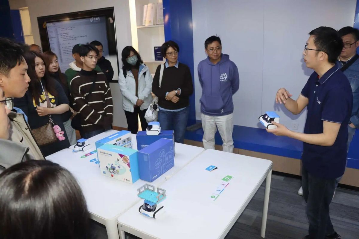 参访团一行参观了艾克瑞特公司新总部,近距离体验公司自主研发的教育机器人产品,感受前沿科技魅力,并进行了互动体验,现场气氛十分热烈。