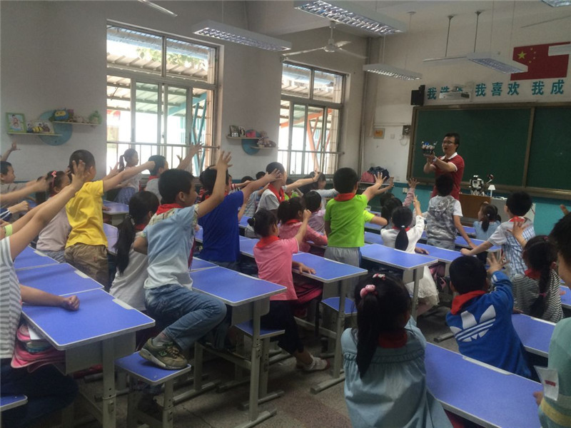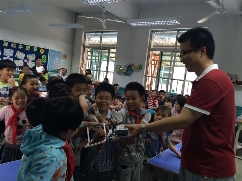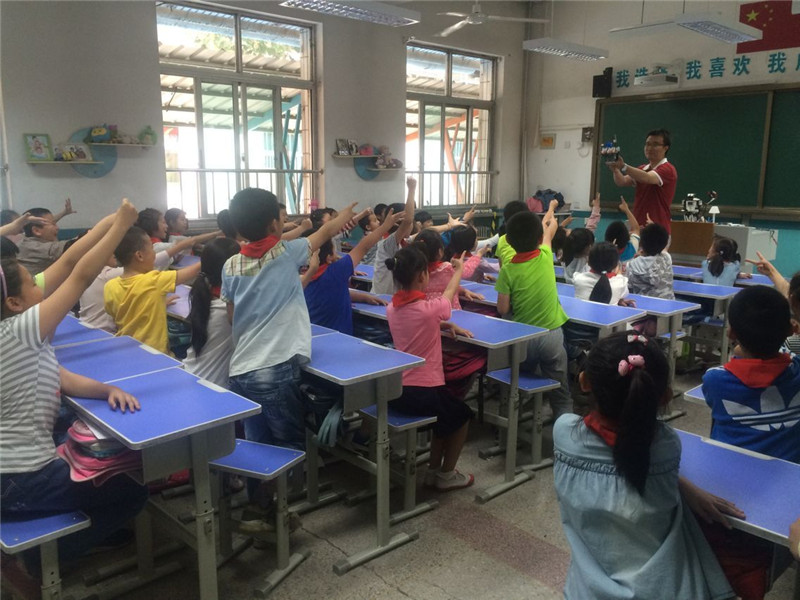2016年6月1日和6月3日艾克瑞特机器人分别走进新苑小学二年级一班和二年级三班,为孩子们带去了一场有趣、好玩的机器人展示,课堂上帅帅的人形机器人、酷酷的眼镜蛇机器人、可爱的小狗、好玩的剪子包袱锤机器人,以及3D打印机作品深深的吸引了孩子们,最后每位小朋友还动手做了有趣的手摇风扇。