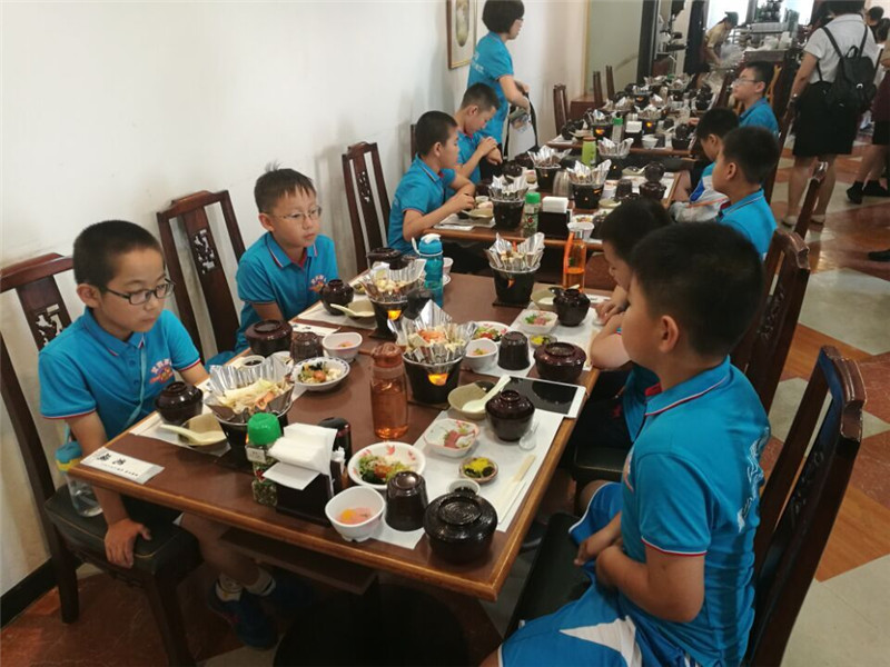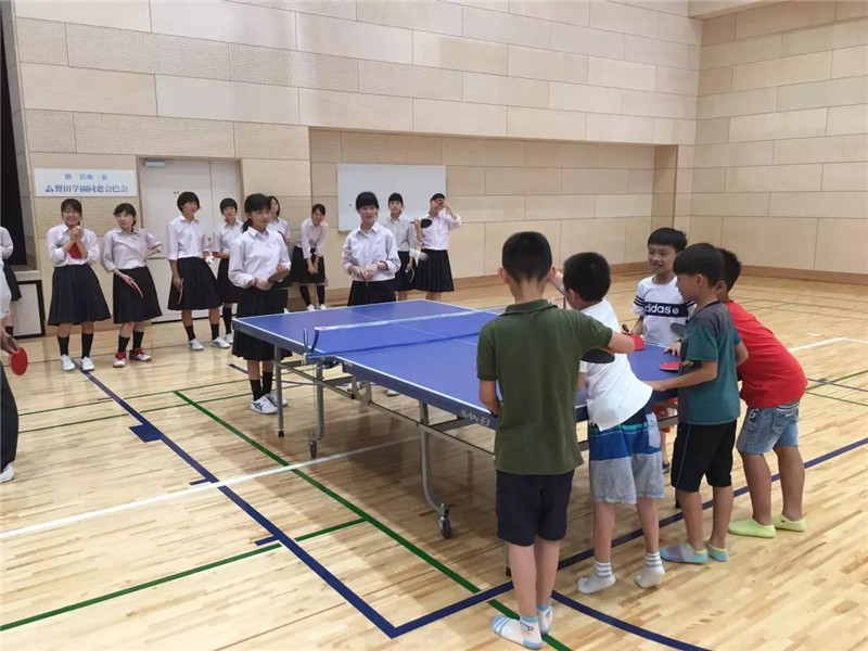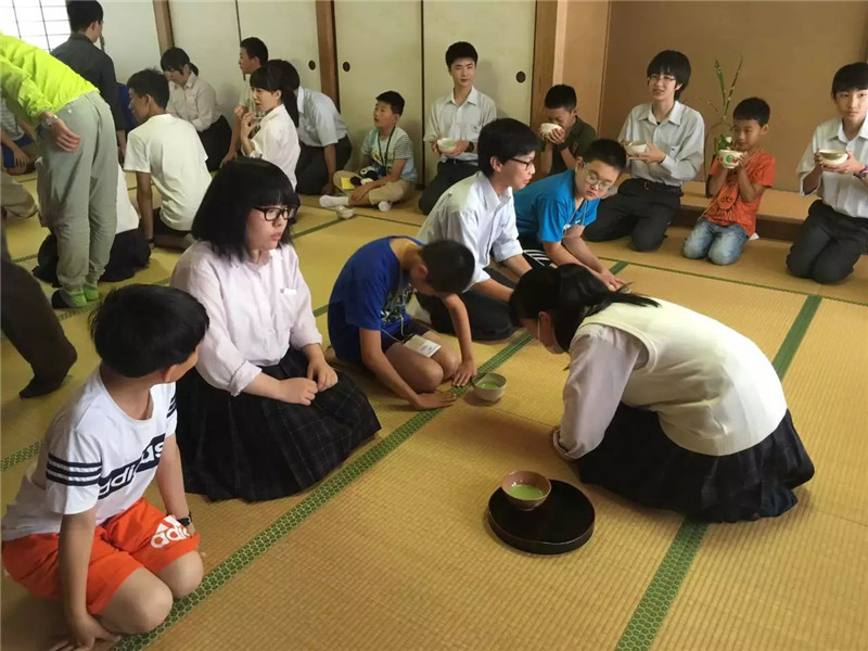 7月15日上午,访问团到访具有140年历史的野田学园,孩子们体验日本茶道,和日本小朋友进行乒乓球友谊赛。