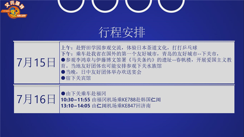 2016年7月9日下午15:00参加日本科技交流的艾克瑞特机器人小工程师访问团从济南顺利出发,当晚19:15由韩国仁川转机赴日本第二大城市大阪关西机场。
