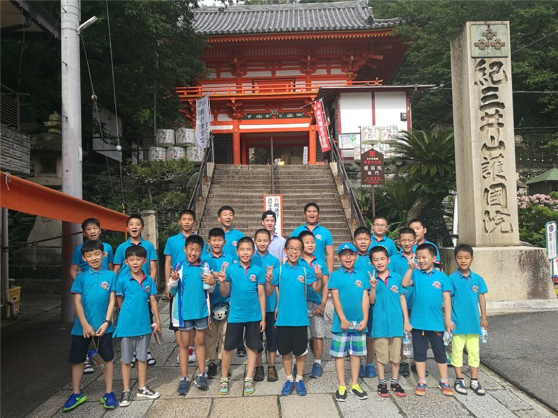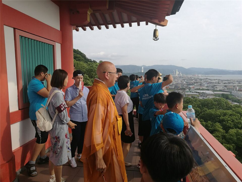 中午丰富的海鲜大餐后,孩子们在我省赠送的大型玉雕孔子像前通读《论语》,参观中国僧人创建的纪三井寺(拜谒廖承志先生题写的“中日友好,千年万年”碑)