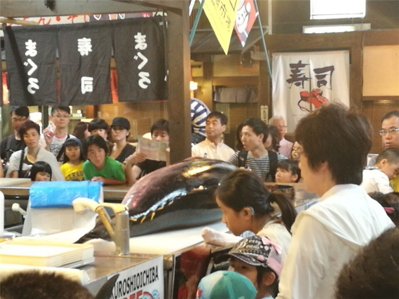7月10日上午访问团赴和歌山工业高等专科学校,随后与日方开展了机器人交流比赛。比赛结束后在日中友好协会友人的带领下孩子们乘车去了当地有名的黑潮鱼市场参观金枪鱼的现场解体表演,孩子们个个兴致十足!
