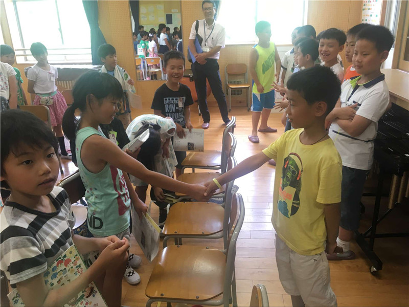 7月11日上午访日代表团走进日本藤户台小学,感受日本学校教育,和日本小朋友一起上课活动,小朋友们建立了深厚的友谊!