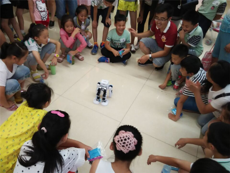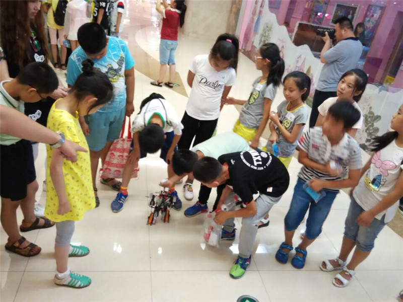 2016年7月5日济南市科技馆暑期科技体验活动,走进艾克瑞特机器人教育济南和谐广场校区,为孩子们展示了阿尔法机器人,机器蛇,机械狗,剪子包袱锤,升降电梯等好玩有趣的机器人。孩子们玩的兴高采烈,每人还动手制作了一个机器人,体验到了小工程师的乐趣。