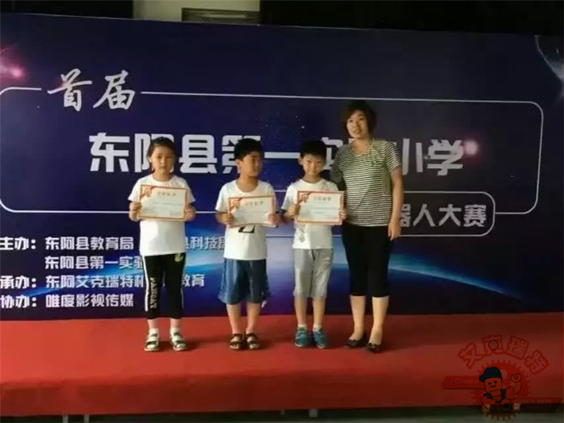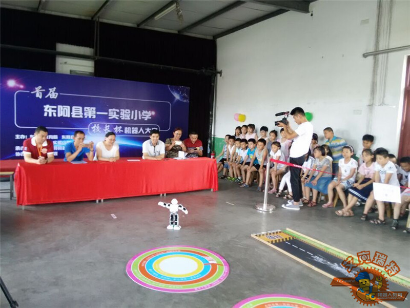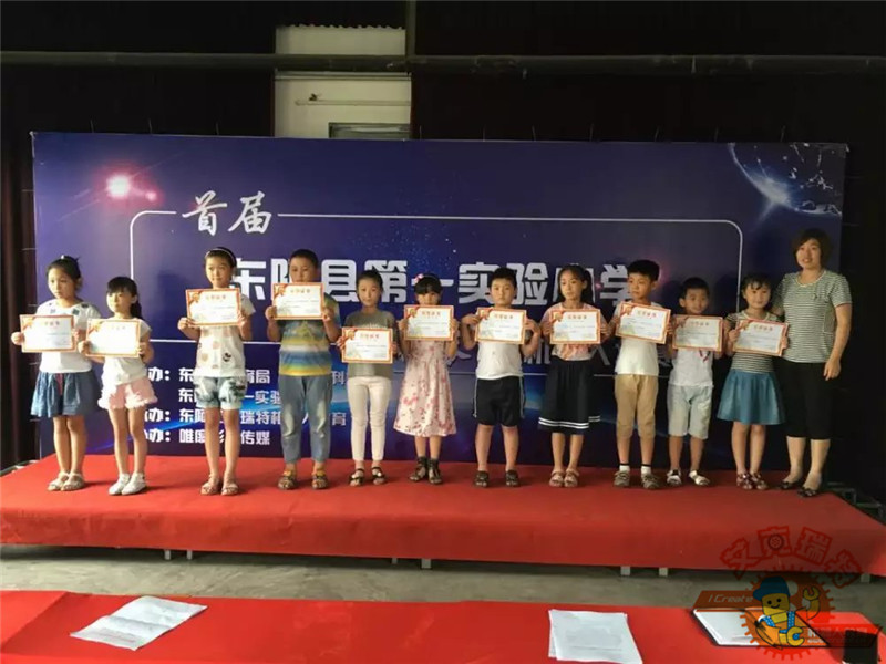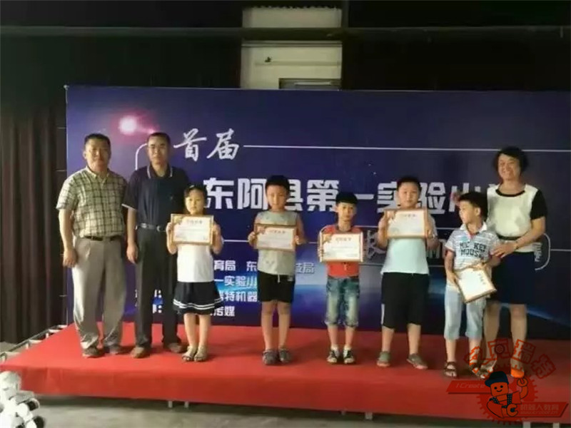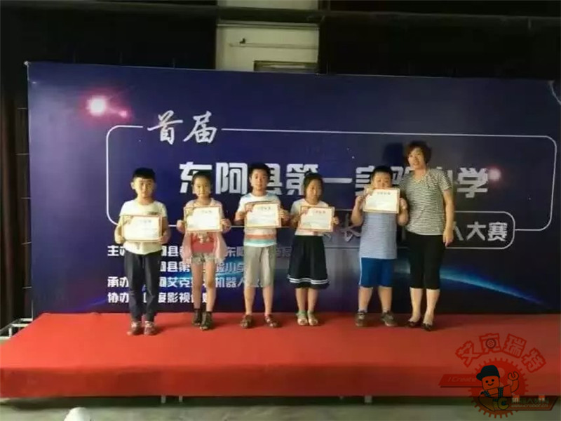 2016年7月5日下午,由东阿县教育局、科技局主办、艾克瑞特机器人教育东阿校区独家承办的东阿县第一实验小学首届“校长杯”机器人大赛在第一实验小学圆满落下帷幕。此次大赛有来自实验小学的五十多名小朋友参加。比赛丰富,不仅有好玩的陀螺比赛、拔河小车、橡皮筋小车、小车竞速、帆船比赛、创意赛等多个项目,而且现场还有机器人跳舞。东阿县教育局提书记、科技局梁局长、电教站贺主任、第一实验小学尹校长、李校长、二年级部张主任、信心中心刘校长出席了本次比赛。感谢东阿县教育局、电教站以及实验小学各位领导的大力支持!孩子们度过了一个激烈快乐的下午!