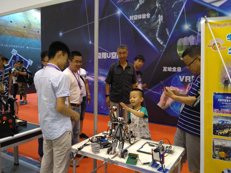 2016年7月7日—10日,中国国际消费电子博览会在青岛国际会展中心举行。艾克瑞特机器人教育作为山东省机器人教育第一品牌,应邀参加了本次博览会。展会期间,艾克瑞特机器人教育展台吸引了大量的参观者。家长和孩子们对人形机器人、3D打印以及创客作品表现出了浓厚的兴趣。