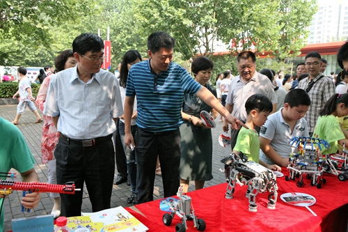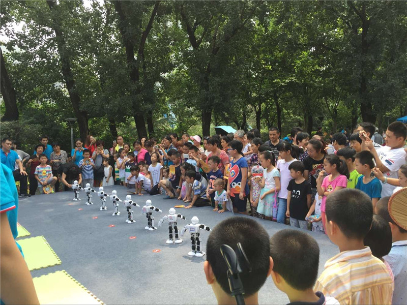 2016年7月22日由济南市科协、槐荫区科协主办,济南艾克瑞特机器人集团承办的济南市“百千万”社区科普公益行动在济南市阳光100艺术馆成功启动。本次活动不仅为孩子们展示了好玩的机械蛇、机械狗、春晚同款机器人阿尔法等还有很多精彩的机器人小比赛邀请现场的家长和小朋友们参加,场面火爆。