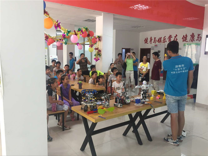 2016年8月由济南市科协、市中区科协主办,艾克瑞特机器人教育集团承办的济南市“百千万”社区科普公益行动走进玉函北区,艾克瑞特玉函校区的老师给孩子们展示了春晚同款机器人“阿尔法”、惟妙惟肖的3D打印、有趣的剪子包布锤机器人、可爱的旋转木马还有“恐怖”的眼镜蛇,同时,由于天气炎热,老师现场教孩子们亲手搭建了可以驱热的手摇风扇,孩子们玩的不亦乐乎。