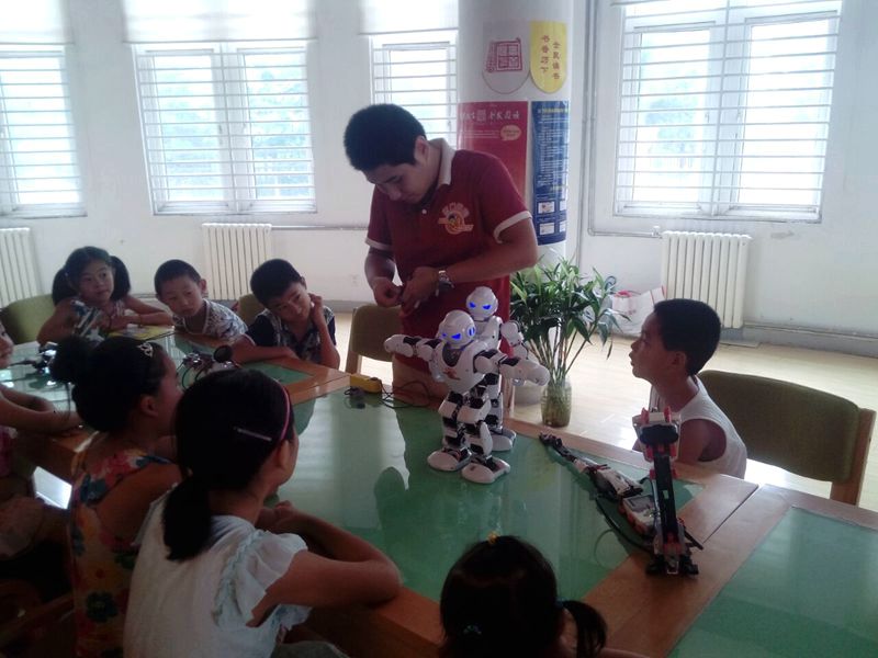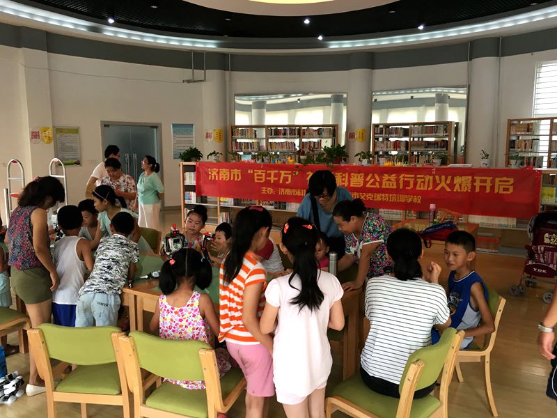 2016年8月13日由济南市科协、历下区科协主办,艾克瑞特机器人教育集团承办的济南市“百千万”社区科普公益行动走进盛福花园,艾克瑞特高新校区的老师们给孩子们展示了春晚同款机器人阿尔法、眼镜蛇机器人、好玩的剪子包袱锤机器人、新奇的3D打印作品以及现场教孩子们搭建好玩的机器人作品。通过这些展示和体验活动,营造出爱科学、学科学、用科学的浓厚氛围、让盛福花园的居民和少年儿童去体验、感悟科学态度和科学精神、丰富科技文化生活,感受科学知识与科技创新带来的快乐和幸福。