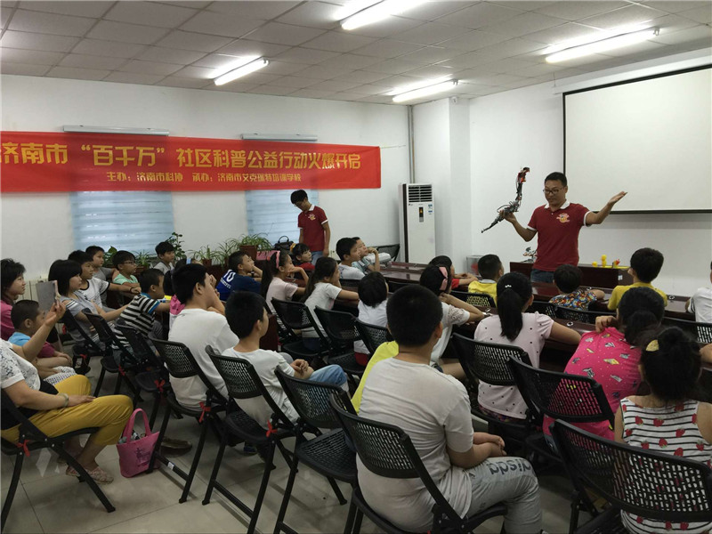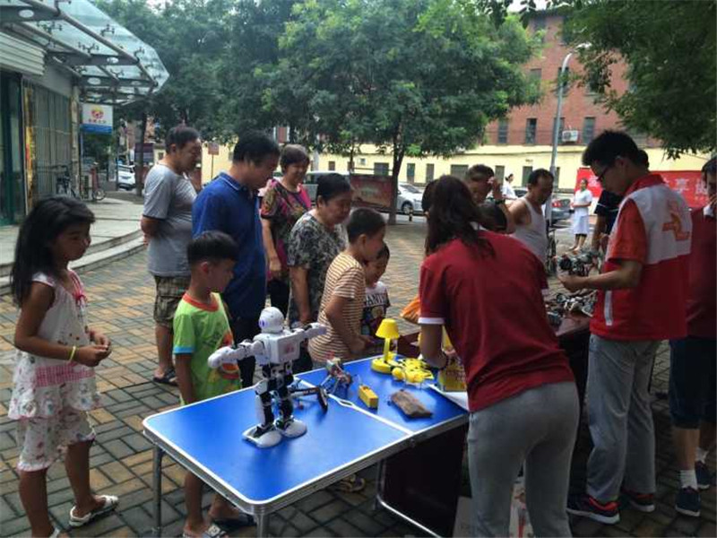 2016年8月17日由济南市科协、市中区科协主办,艾克瑞特机器人教育集团承办的济南市“百千万”社区科普公益行动走进馆驿街社区,艾克瑞特振华校区的老师们给孩子们带去了好玩的机械蛇、剪子包袱锤、3D打印作品以及春晚同款阿尔法机器人。孩子们在欢乐中学习了机器人知识,并且亲手制作了一把乐高手枪,比赛场面异常热烈。深深的吸引了孩子们的注意力,激发了孩子对科技的浓厚兴趣。