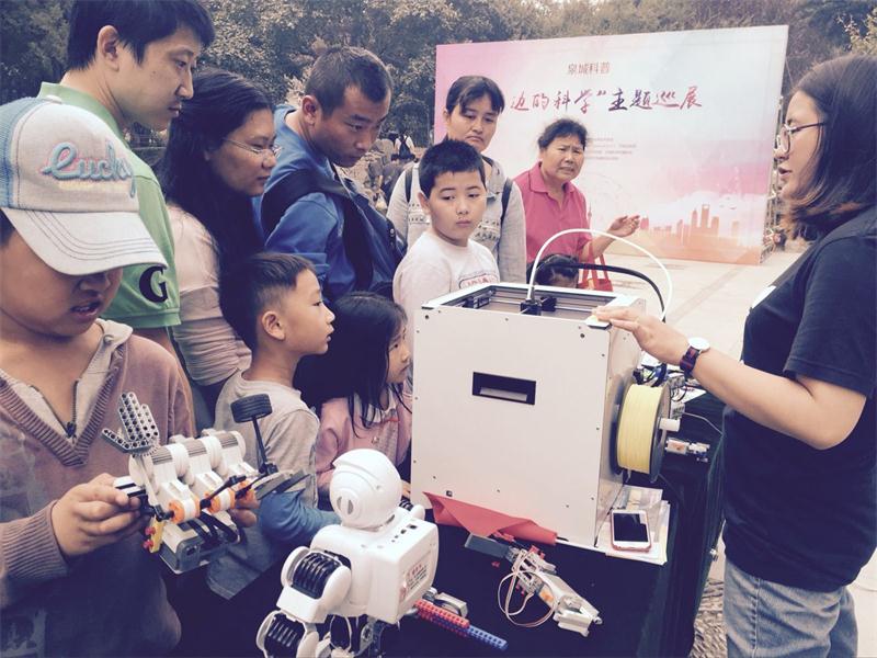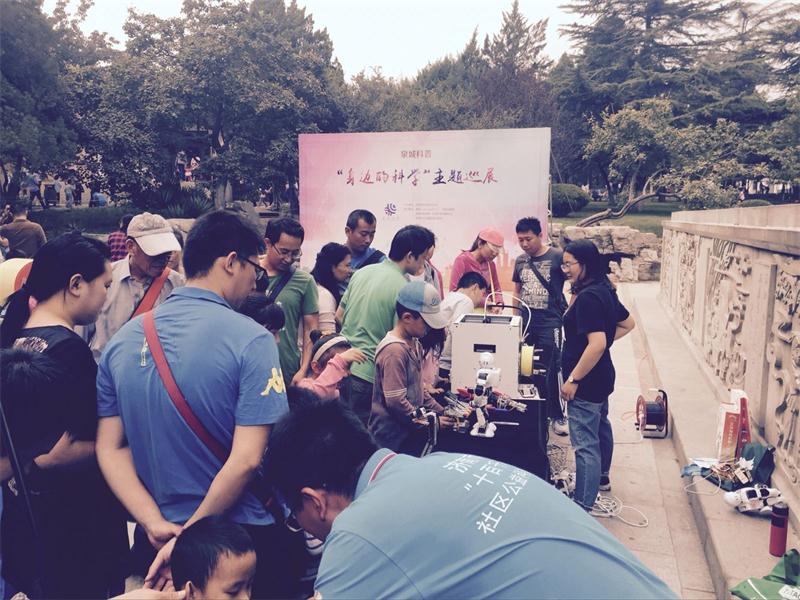 2016年10月1日由济南市科协主办,舜网、济南动物园、济南市科技馆、济南科学传播协会、中国机器人教育领军品牌艾克瑞特机器人教育等共同承办的泉城科普——“身边的科学”主题巡展在济南动物园开展,活动现场,各种作品让孩子们玩得不亦乐乎,陪同而来的家长也兴致勃勃,和孩子们一起玩剪子包袱锤,一起欣赏人形机器人舞蹈展示,3D打印展示等体验活动。本次泉城科普主题巡展为期两天,参与科普互动的游客获赠了科普书籍。