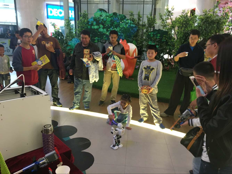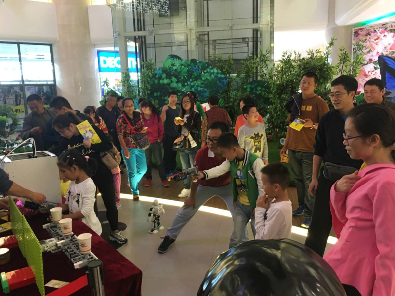 十一国庆小长假期间,中国机器人教育领军品牌艾克瑞特机器人教育北京和谐校区携手银座和谐广场在地下一层中厅举行“迎国庆,疯狂乐高”大型科技体验活动,该活动10月4日-10月7日早10:00-晚9:30为期四天,在这里小朋友们和爸爸妈妈一起参与到疯狂乐高射击比赛中,亲身体会到科技带来的神奇体验;另外活动现场还有先进的3D打印作品、聪明的剪子包袱锤机器人、“恐怖的”眼镜蛇机器人、忠实的跟随机器小狗都令在场的家长和孩子们大开眼界。艾克瑞特机器人教育北京和谐校区10月14日起就要正式开课啦,小朋友们还在等什么呢?快来预约体验吧!预约电话:010-57364802