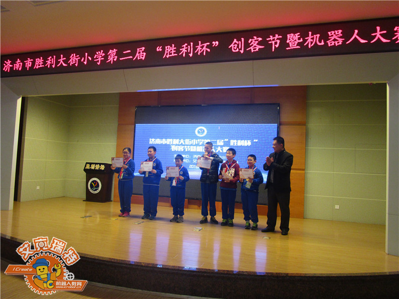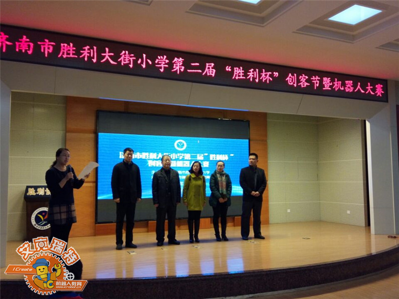 2016年10月31日上午,由艾克瑞特机器人教育集团承办,济南市胜利大街小学主办的第二届“胜利杯”创客节暨机器人大赛在胜利大街小学举行,并圆满落下帷幕。本次活动不仅邀请了校内领导臧主任前来主持,而且还邀请了市中区电教站杜春晓老师、艾克瑞特机器人教育集团总校长张祖平以及胜利大街小学唐校长前来致词。