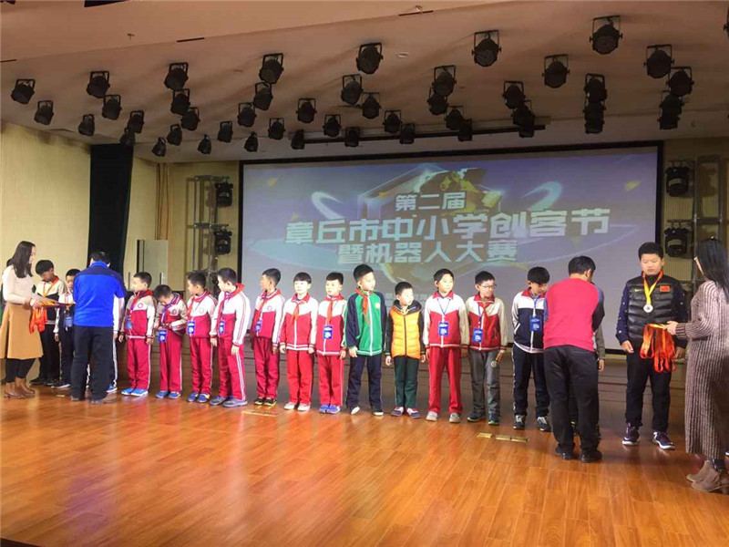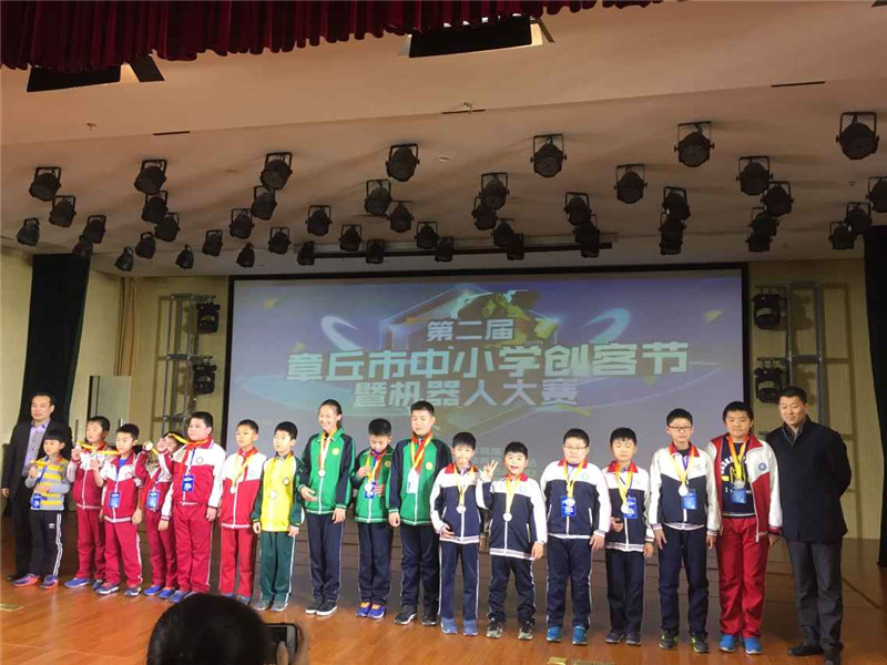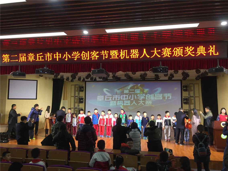 2016年12月2日,由章丘市教育体育局主办、章丘市教育局电教站、章丘市青少年科技艺术活动中心、济南市艾克瑞特培训学校承办的第二届章丘市中小学创客节暨机器人大赛在章丘市青少年科技艺术活动中心顺利举行。章丘市电教站张涛站长、李荣骏站长,章丘市科技艺术活动中心邢学明主任,张尊丰主任及济南市艾克瑞特培训学校总校张祖平校长等领导出席了颁奖典礼,并为获奖参赛选手颁发奖牌。