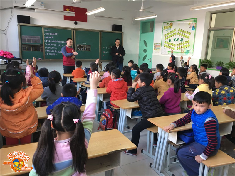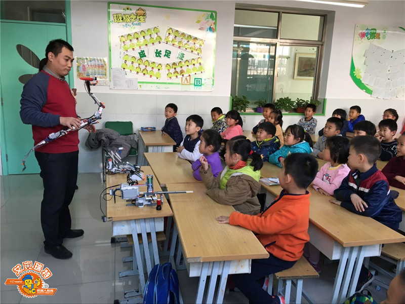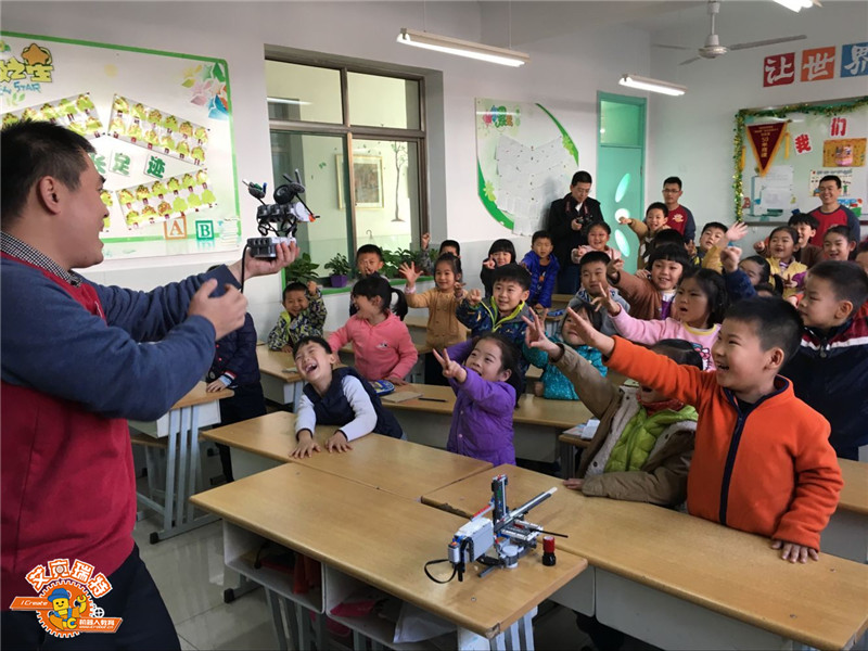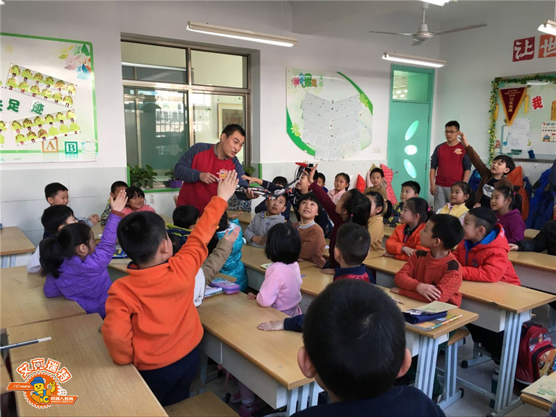 2016年12月2日,艾科瑞特机器人的老师走进舜耕小学1年级6班,给孩子们带去了一场盛大机器人体验课,让孩子们亲密的接触到了机器人。还给孩子们展示了蝎子机器人、机械眼镜蛇和剪刀石头布等机器人,孩子们在课堂上玩的不亦乐乎。同时,老师们还设有抢答环节,让同学们在快乐中学到了知识,也亲自动手做了一个手摇风扇的作品,增长知识的同时也锻炼了孩子们的动手操作的能力。